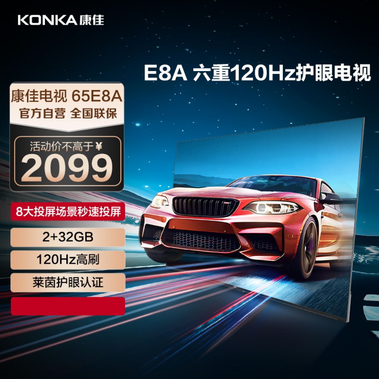 • 康佳电视 65E8A 65英寸 2+32GB 120Hz高刷护眼电视 4K超清